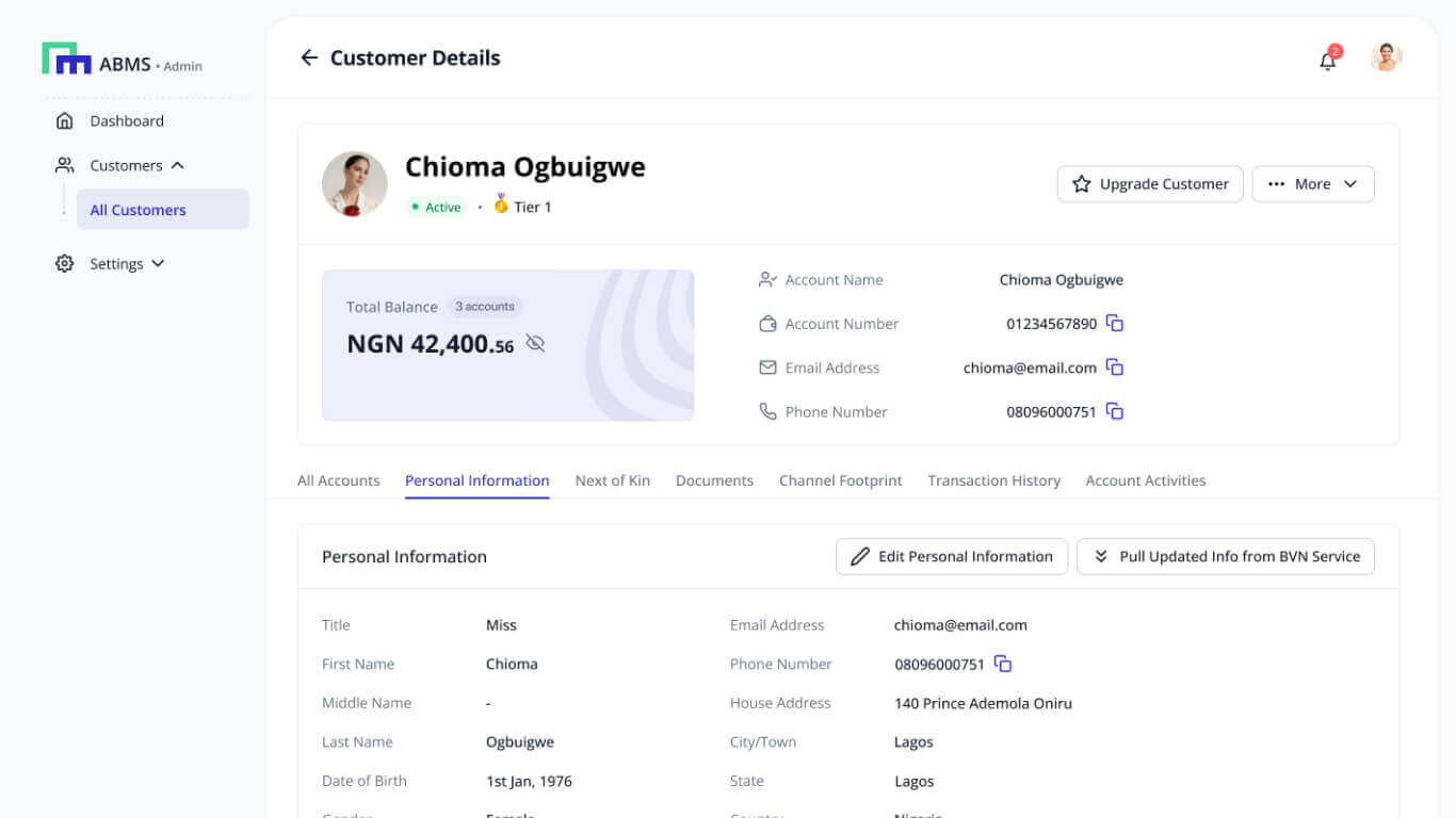 A robust management portal that streamlines customer, staff, and third-party service provider management. It supports inter/intra-bank transactions, fraud detection, and bulk salary payments, improving operational efficiency.